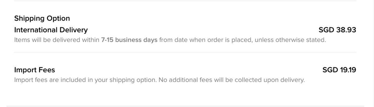 関税がかかる場合、「輸入手数料は配送オプションに含まれています。配達時に追加料金は請求されません。」とのこと。